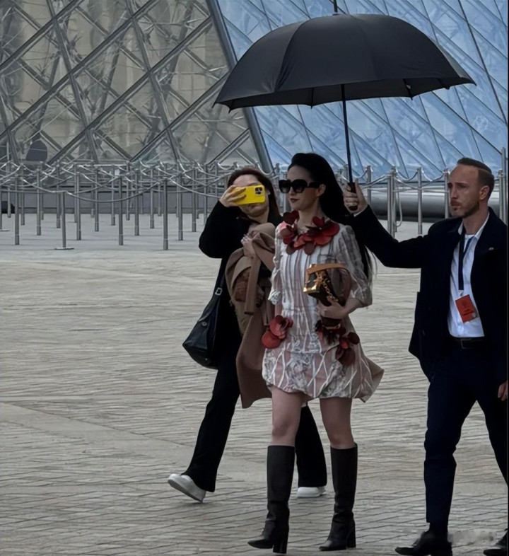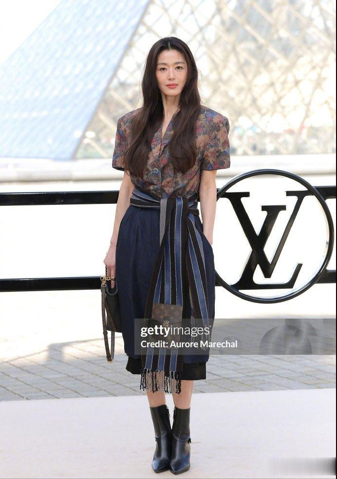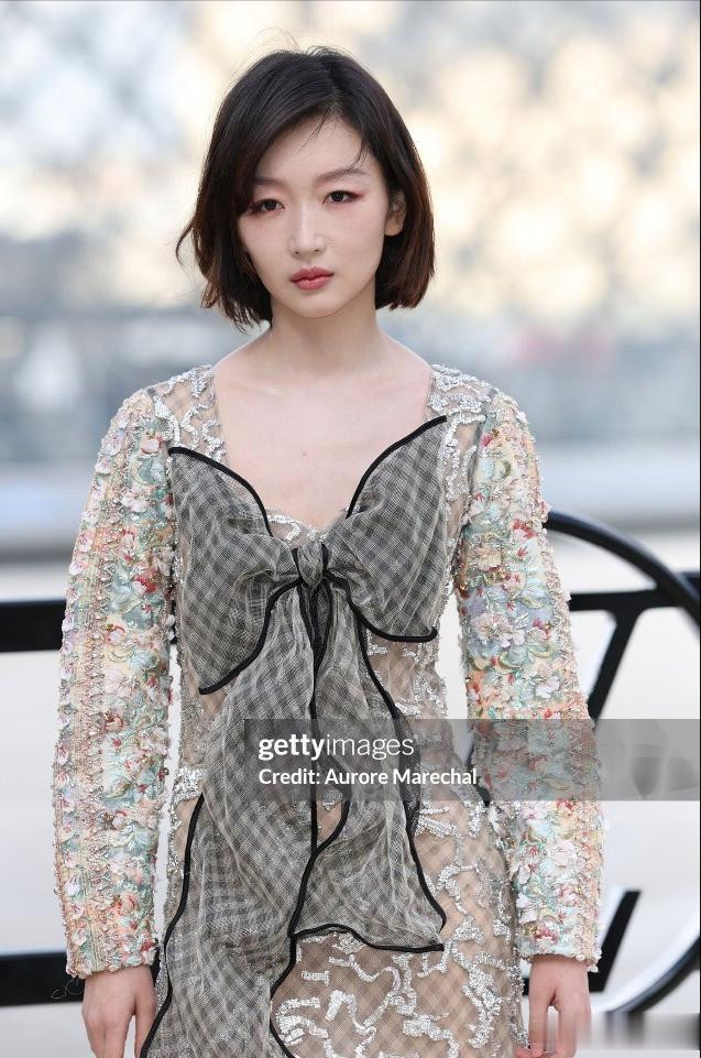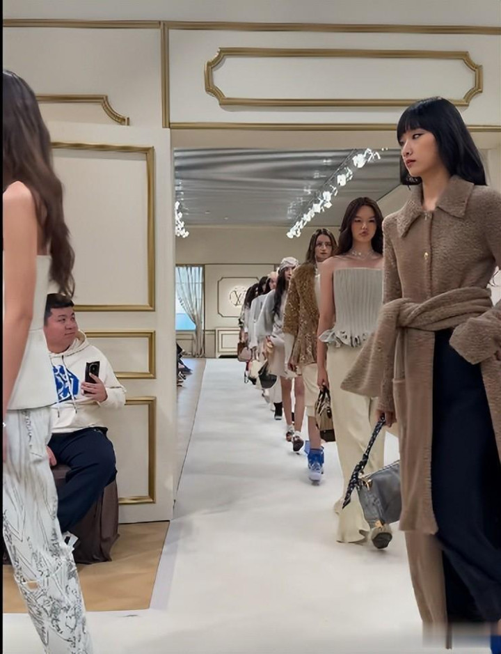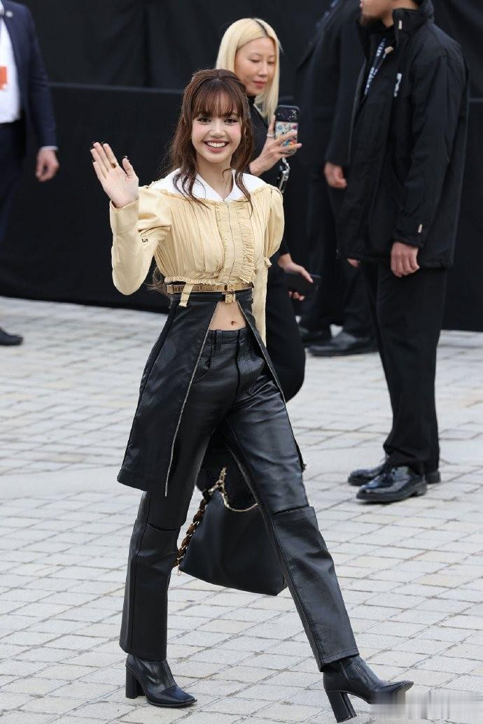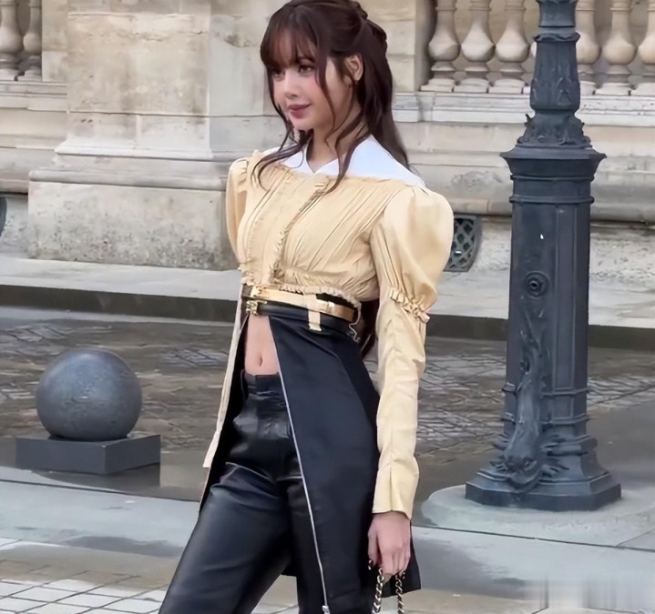 她穿的是露腰皮裤,搭配半扎公主头,把复古性感和少女感融合得恰到好处,不少时尚博主都夸她“完美诠释了 LV 的经典美学”。
