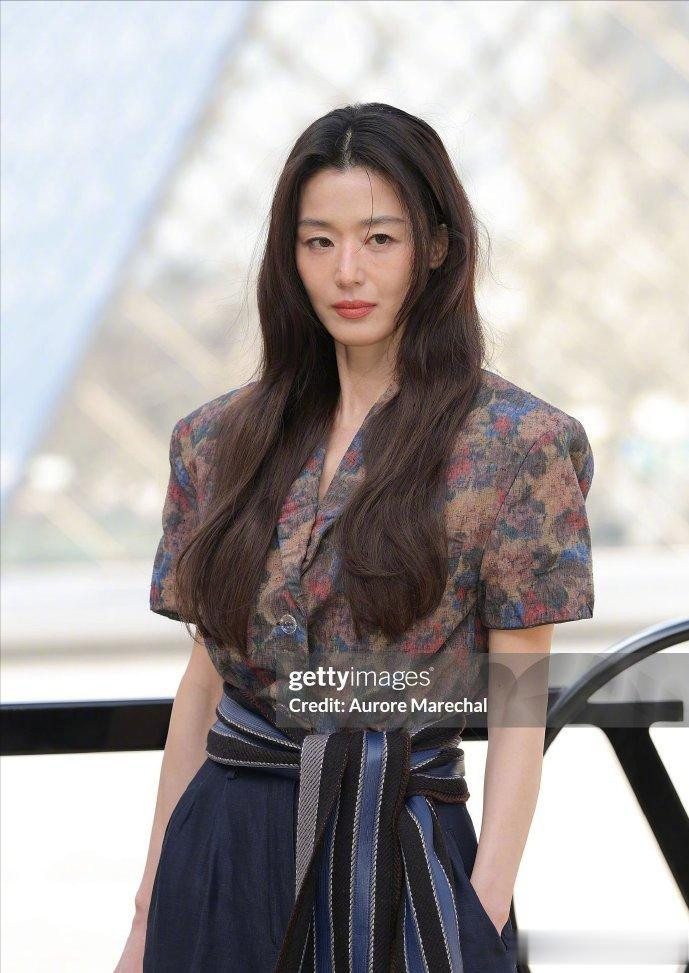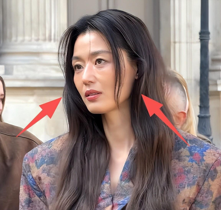 生图照片上,全智贤的眼袋特别明显,整个人看起来疲态满满,头发还弄得乱糟糟的,配上这身老气的穿搭,甚至有了“流浪汉” 的既视感。